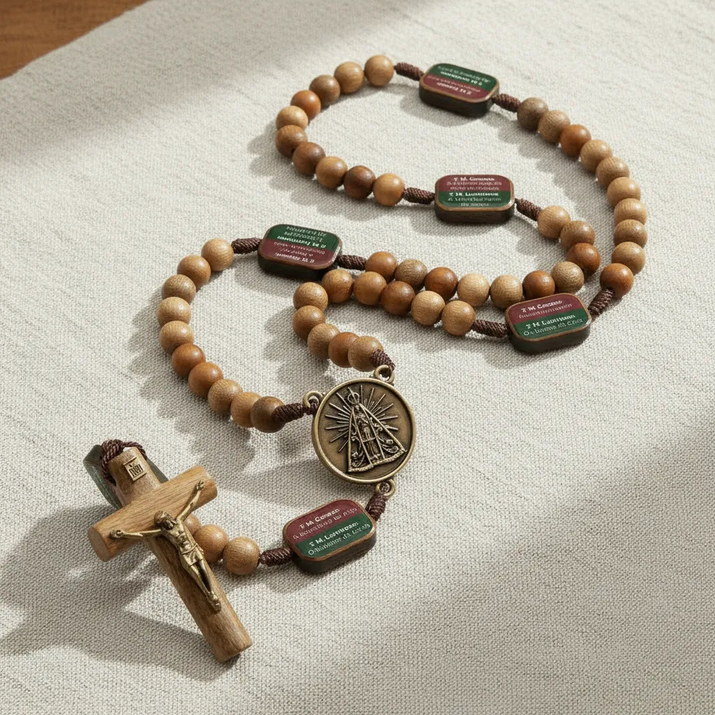 Terço de Nossa Senhora Aparecida com Mistérios Resinados – Madeira Imbuia