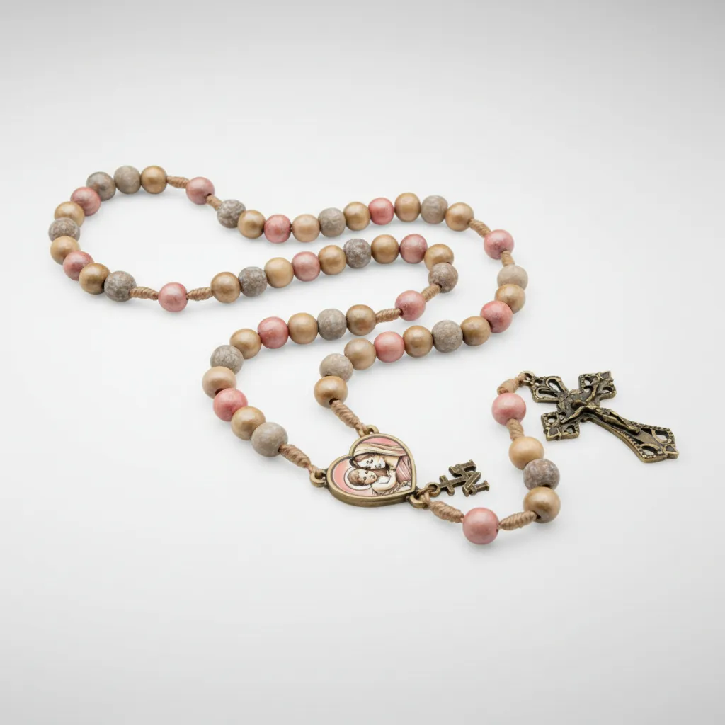 Com 40cm de comprimento, é confortável para o uso diário, momentos de oração ou para presentear alguém especial. Um terço que representa carinho, proteção e devoção à Virgem Maria, mãe de todas as mães.
