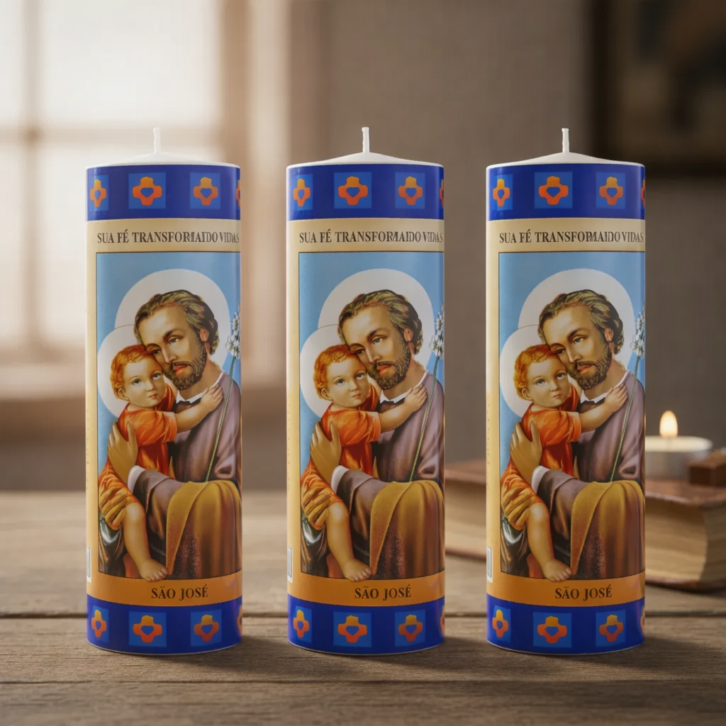 Vela Votiva São José 15x5cm | 272g | Parafina + Massa Hidrogenada - 3 unidades